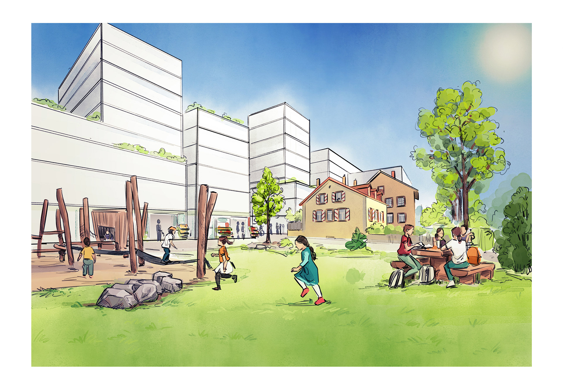 illustrate and visualize your architectual concept for your costumers and the public. Make it more alive and vibrant. Illustrate a feeling without getting to much into architecture itself.