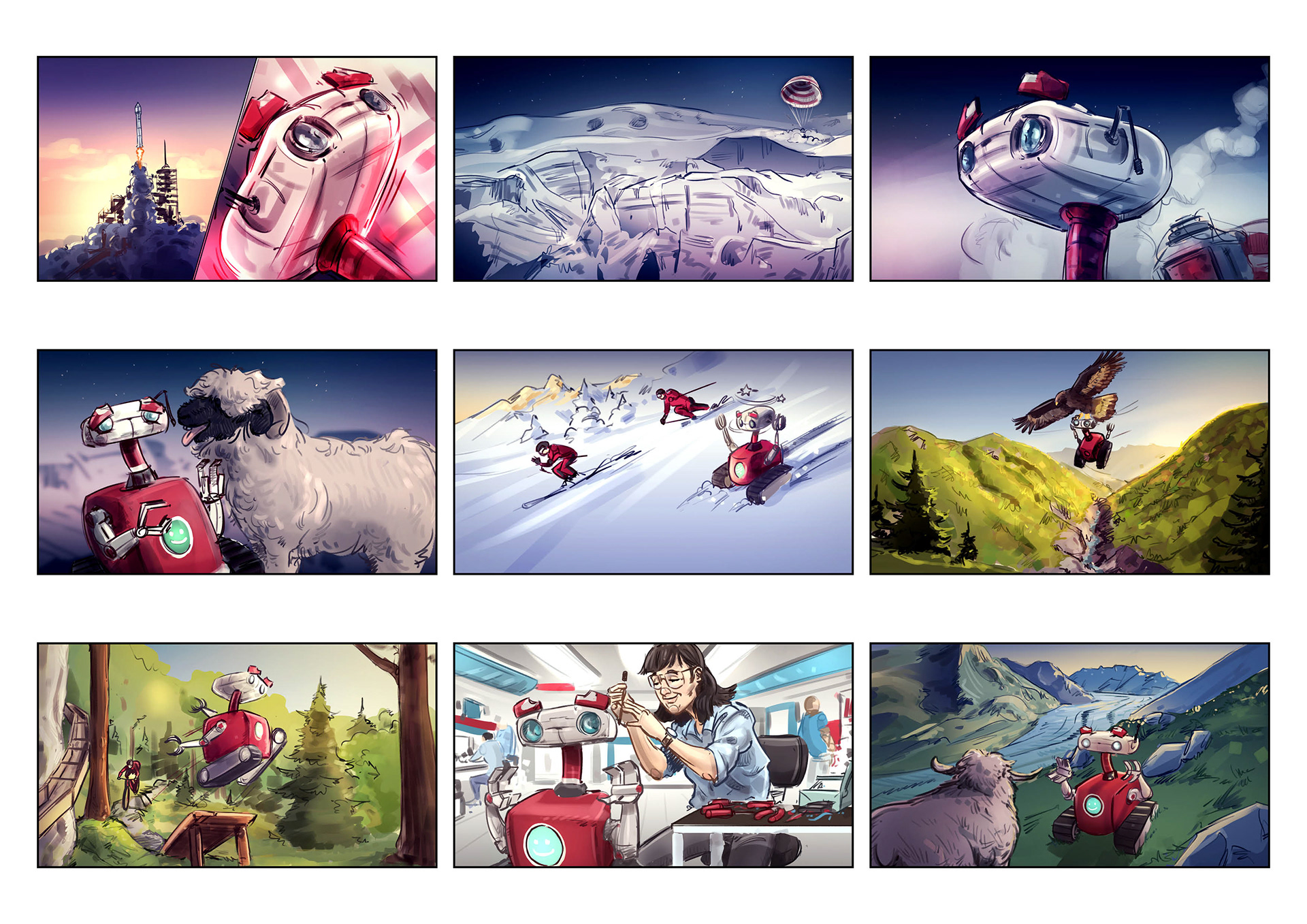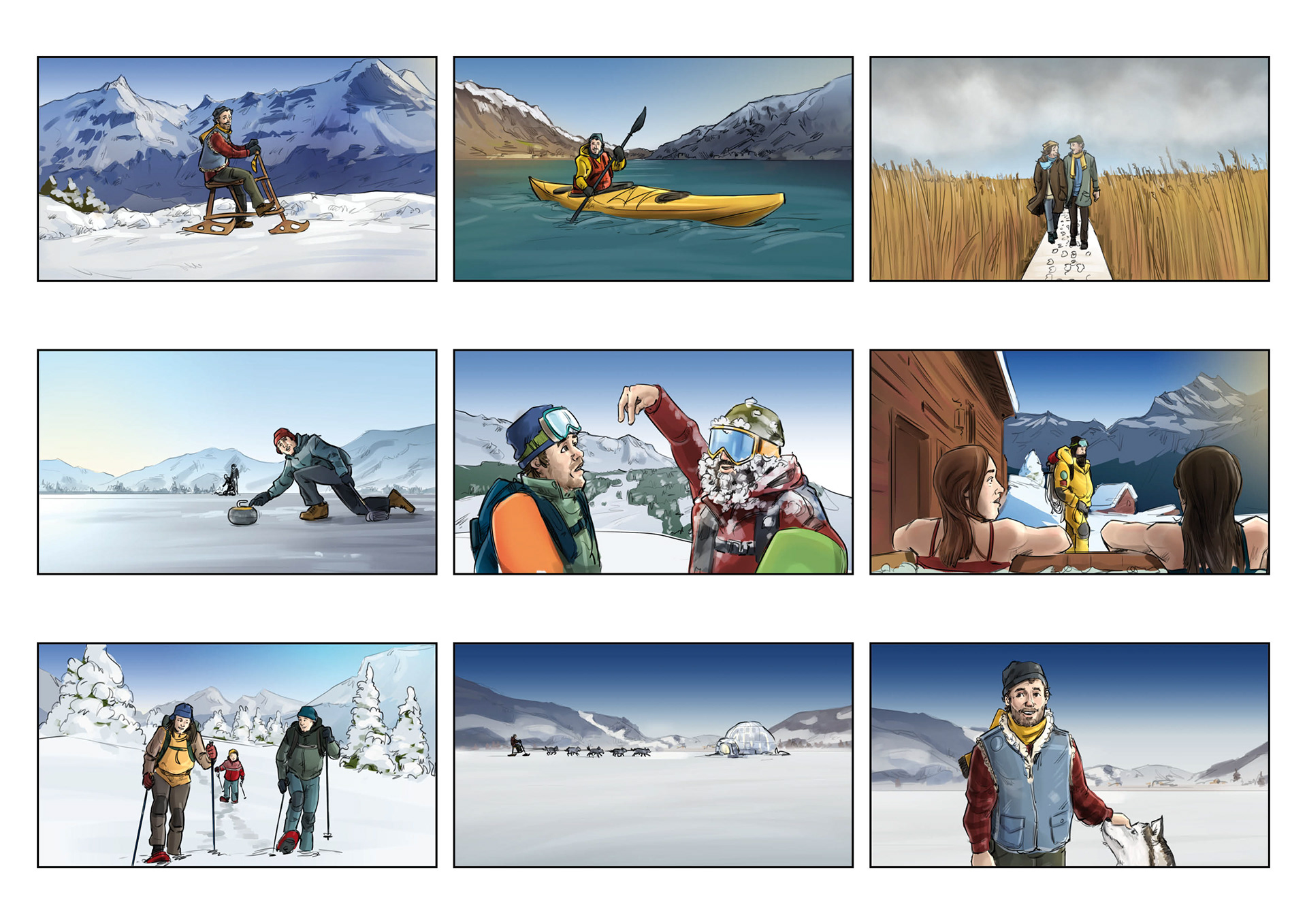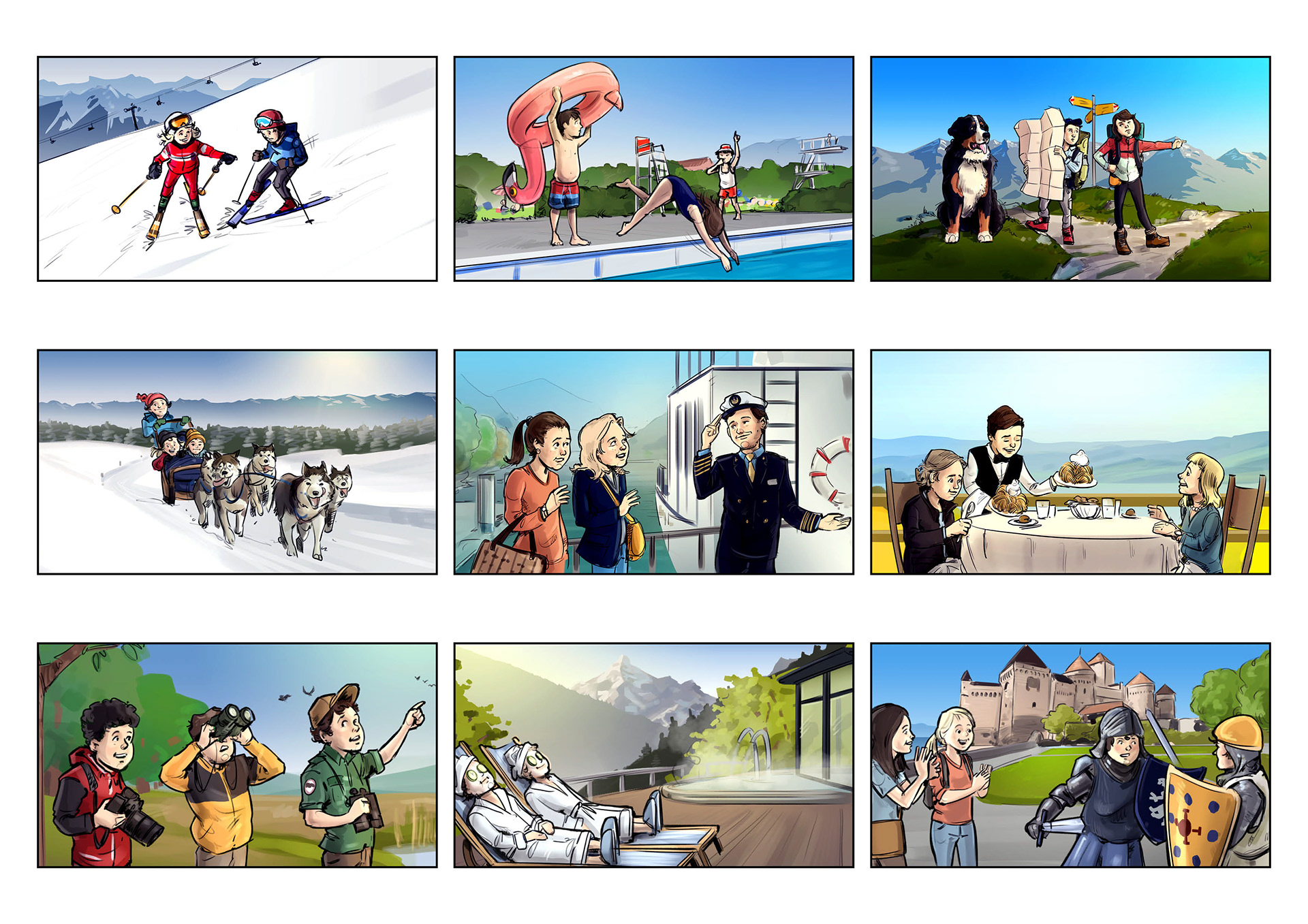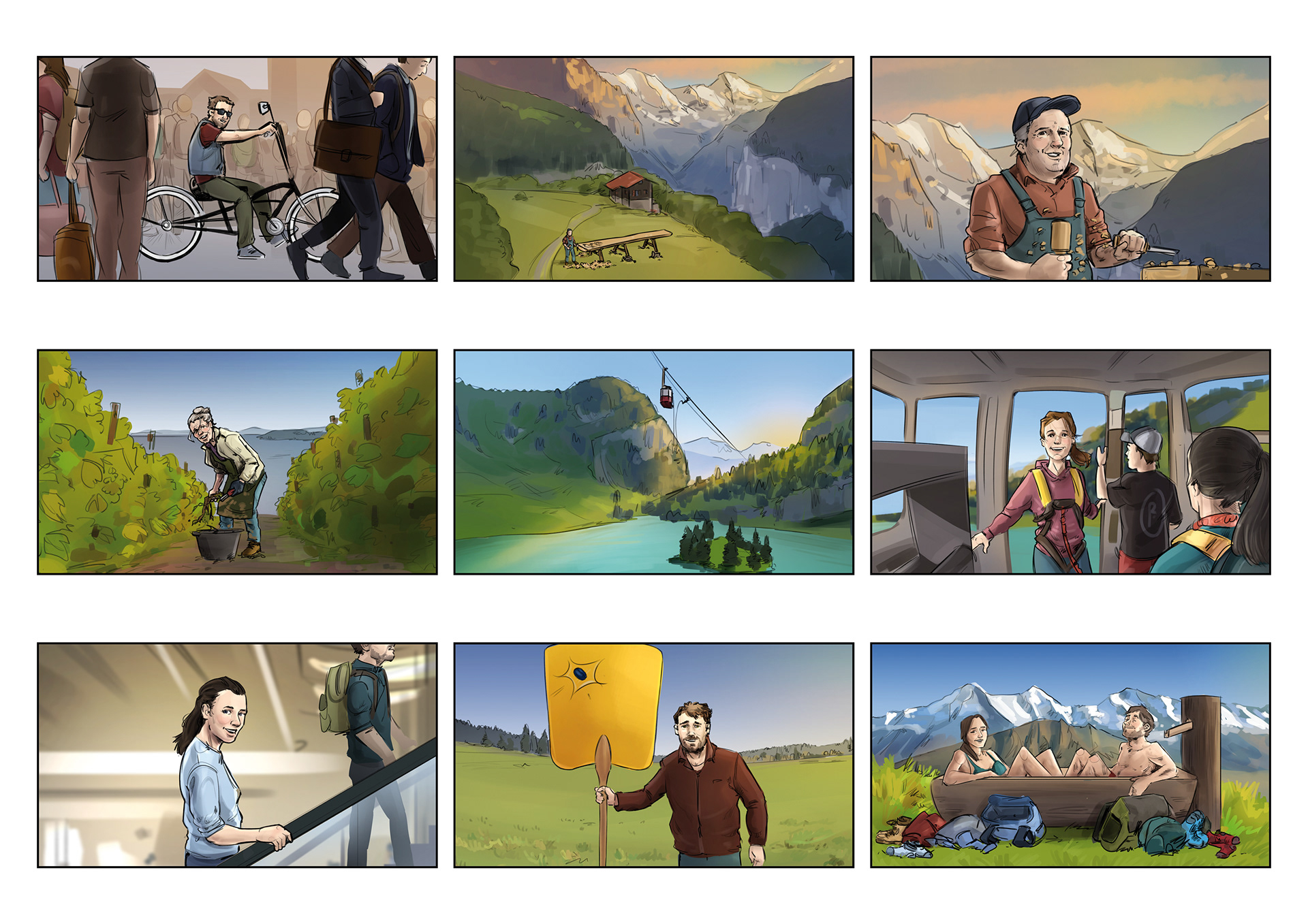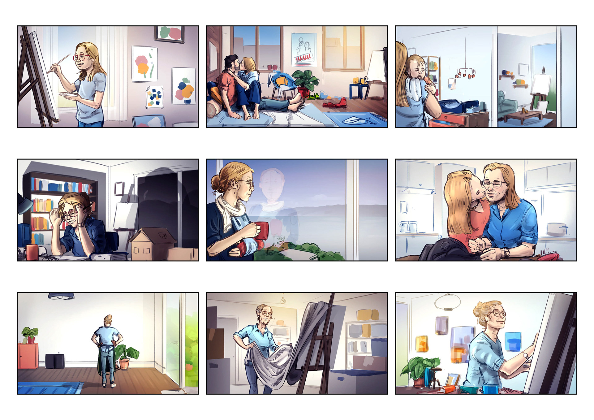 Storyboard and Shootingboards in color. For Keyframes in Agencyboards, Pitches and Animatics.