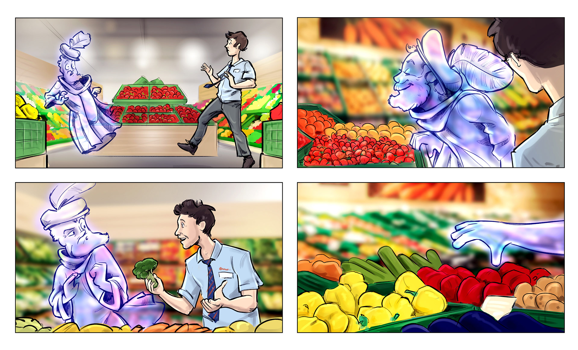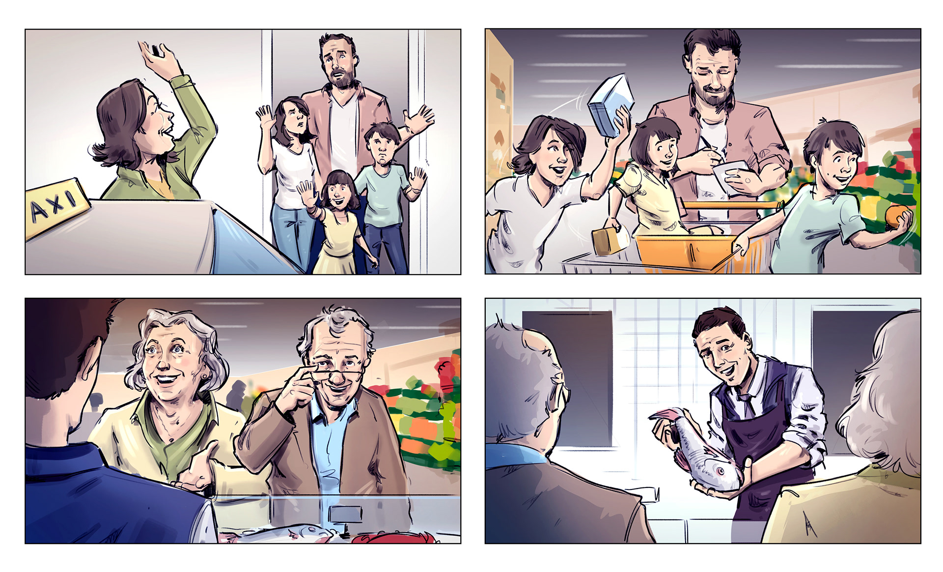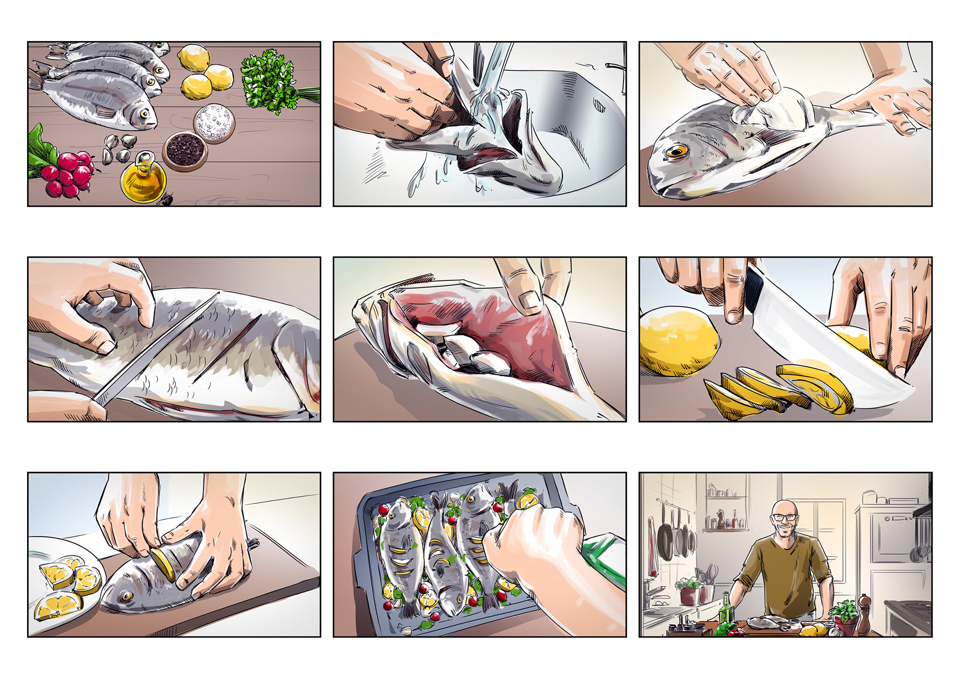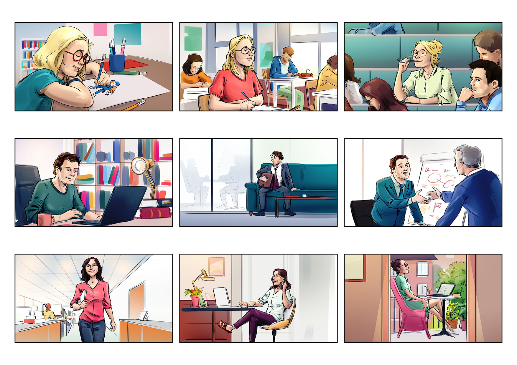Storyboard and Shootingboards in color. For Keyframes in Agencyboards, Pitches and Animatics.